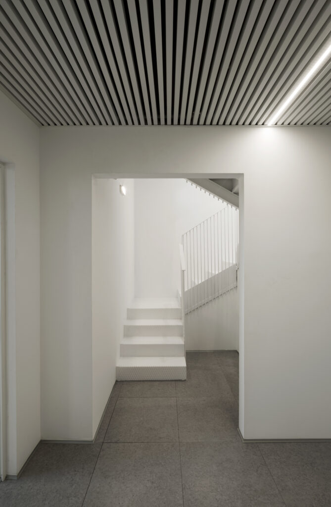 Los nuevos espacios interiores los tratamos con Transparencia y Conectividad frente a la rígida compartimentación estanca del edificio original, se proyectan unos espacios de trabajo administrativos de manera abierta y conectada. El eje de circulación central se define mediante particiones transparentes que permiten la entrada de luz natural desde ambas fachadas, garantizando el bienestar del trabajador y una lectura continua del espacio.
